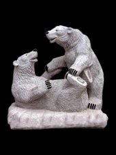 Two Bear Grey Marble Statue